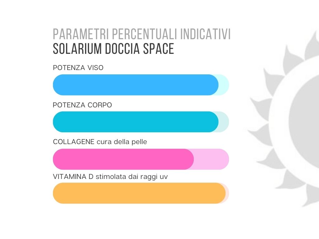 Solarium di ultima generazione con sistema abbronzante a bassa pressione e collagene. Monta dei nuovi tubi Hurricane che combina abilmente e efficacemente le quattro principali lunghezze d’onda della luce solare.