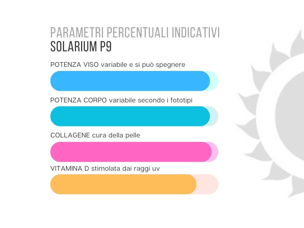 Il design del Solarium sulle orme della leggendaria Porsche 911. L’icona del design della mano di Ferdinand Alexander Porsche continua ad affascinare le persone di tutto il mondo. E così lo Studio FA Porsche è stato il candidato preferito per l’ambizioso progetto di design P9. Il risultato: un design unico che affascina i clienti. Il colore del telaio “Magic Silver” affascina con una moltitudine di programmi di luci selezionabili. Monta dei nuovi tubi Hutticane che combina abilmente e efficacemente le quattro principali lunghezza d’onda solare: UVA per raggiungere velocemente un’intensa abbronzatura, UVB che favoriscono la produzione di melanina e di vitamina D, luce blu per una pelle pura e senza macchie, luce rossa che stimola la produzione di collagene per un ulteriore effetto rivitalizzante e lenitivo della pelle.